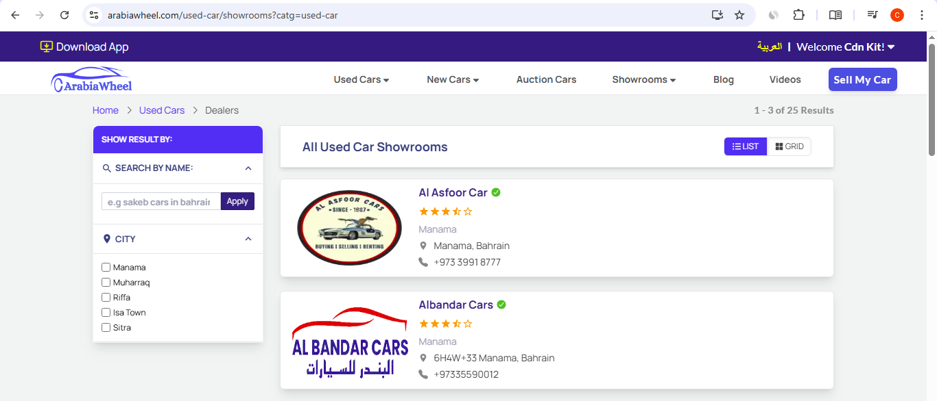 • Showrooms & Dealers: A directory of All Used Car Showrooms and dealers, complete with location and contact information, allowing users to search by name and city.